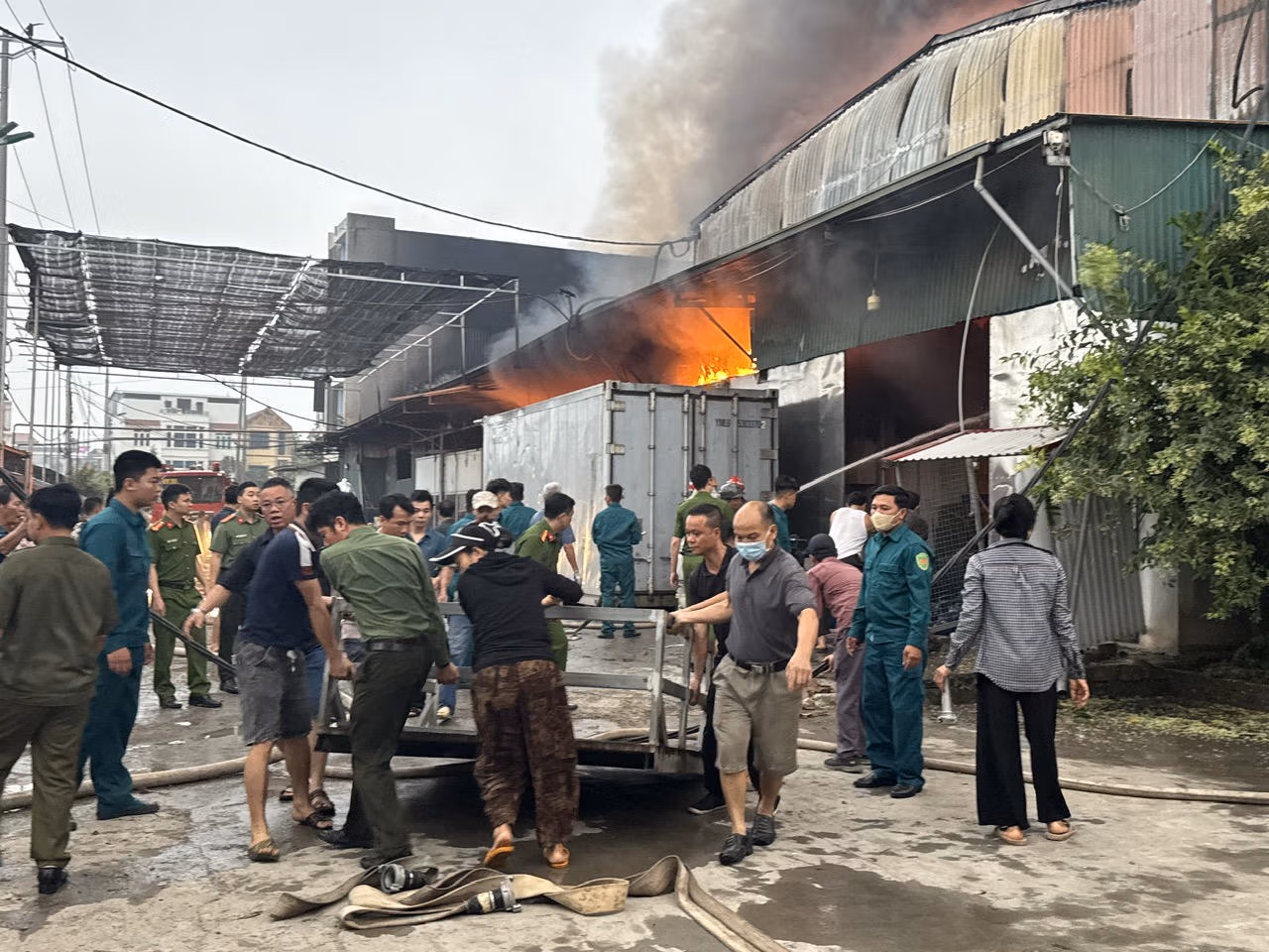 Do bên trong chứa nhiều vật liệu dễ cháy, ngọn lửa nhanh chóng bùng phát mạnh và có nguy cơ lan rộng. Lực lượng tại chỗ gồm công an xã, dân quân tự vệ cùng người dân đã tích cực thực hiện phương châm “4 tại chỗ”, vừa tổ chức dập lửa bước đầu, vừa khẩn trương di dời tài sản, hỗ trợ các hộ dân xung quanh để ngăn cháy lan.