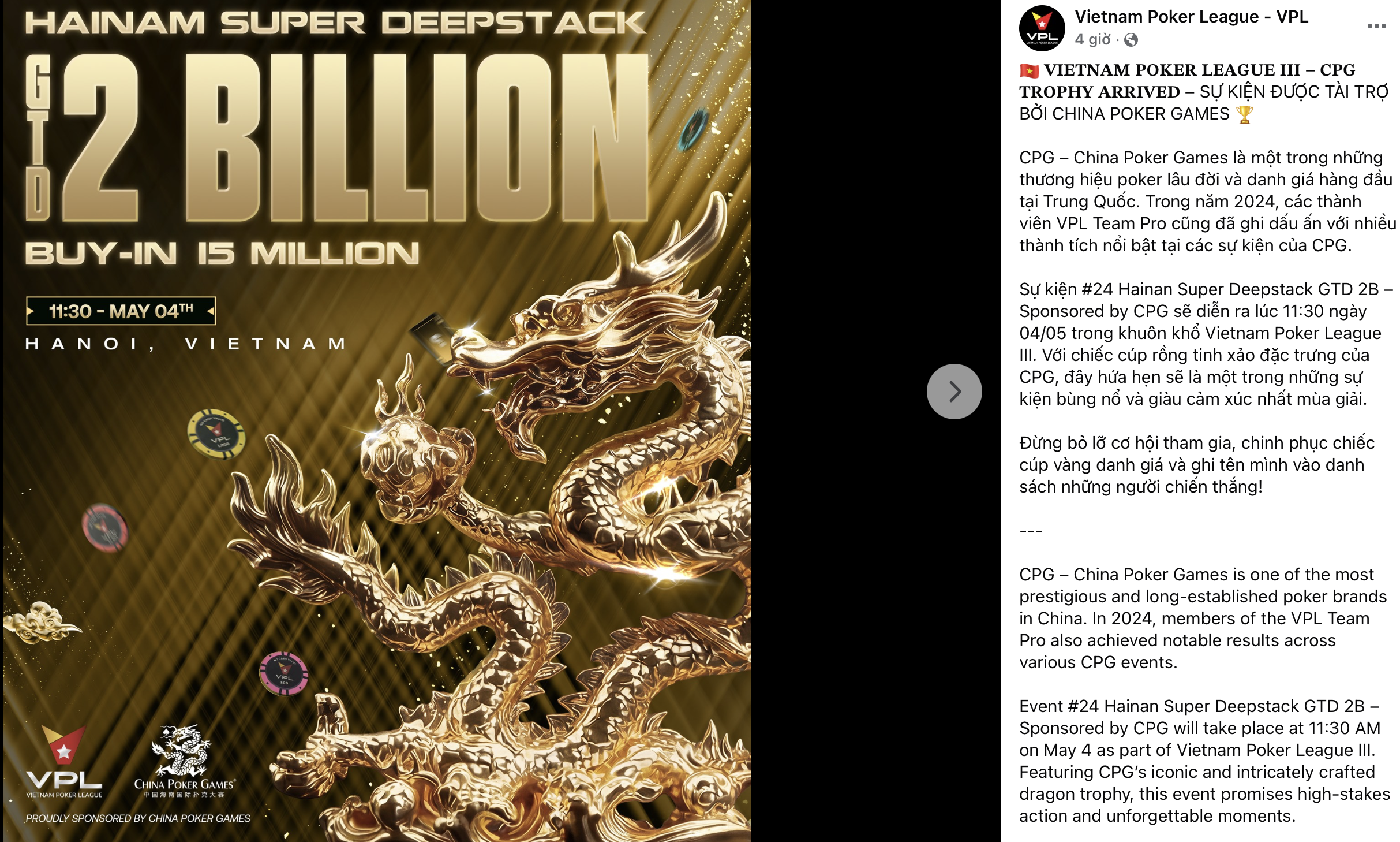 Ngay sau khi cơ quan quản lý là Sở Văn hoá và Thể thao Hà Nội có văn bản chấp thuận chủ trương, một trang mạng nhận là ban tổ chức của giải đấu Poker này đã đăng tải lịch thi đấu và thông tin các đối tác trên các nền tảng mạng xã hội.
