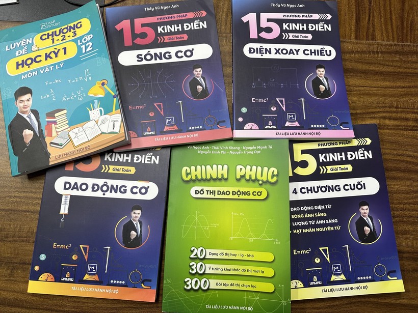 Theo phản ánh, ngoài dạy các khóa học có thu phí, “thầy” Vũ Ngọc Anh hiện đang bán các bộ sách chuyên về vật lý do mình tự viết trên nhiều nền tảng mạng xã hội. Đáng chú ý, những bộ sách này chỉ là tài liệu lưu hành nội bộ và chưa được cơ quan chức năng cấp phép trong lĩnh vực thương mại.