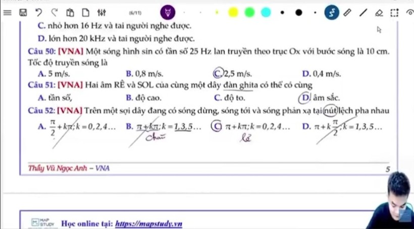 “Tại một clip dạy online, “thầy” Vũ Ngọc Anh đưa ra khái niệm “Biên độ là độ dài của Biên” trong khi sách giáo khoa định nghĩa: Biên độ là độ lệch cực đại của vật hoặc li độ cực đại. Điều này vừa sai về định nghĩa và bản chất vật lý là hết sức nguy hiểm trong việc hình thành các khái niệm vật lý của học sinh”, thầy C. lấy ví dụ.